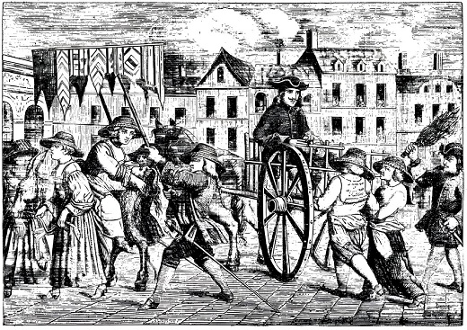 La peine du fouet s’infligeait de deux manières. Ce qu’on appelait le fouet sous la custode s’appliquait dans l’intérieur des prisons. L’autre flagellation était publique : on attachait ordinairement derrière une charrette ceux qui étaient condamnés à la subir ; ils étaient nus jusqu’à la ceinture, et à chaque place publique ils recevaient sur les épaules une certaine quantité de coups de verges. Une ordonnance de Louis XII porte que les enfants blasphémateurs de dix à quatorze ans seront fouettés publiquement. Pasquier rapporte que de son temps il vit fouetter sous les ponts des batteurs de pavé qui venaient y coucher la nuit. Au dix-huitième siècle, on fouettait encore dans les carrefours les gens qui favorisaient les mauvaises mœurs. Un chapeau de paille grossier dont l’on coiffait les patients faisait partie de la peine; sur leur dos était une inscription indiquant leurs délits. Quelquefois on les plaçait par raillerie sous une espèce de dais. Dans les cas les plus graves, on leur attachait une corde au cou, on les marquait sur l’épaule d’une fleur-de-lis, et ensuite on les bannissait. Du reste, ces châtiments étaient presque toujours l’occasion de grands scandales. Les plus mauvais sujets étaient ceux qui, en définitive, étaient le moins punis : loin de paraître humiliés, ils affectaient l’effronterie la plus odieuse dans leurs gestes et leurs discours, et souvent attentaient ainsi d’une manière plus fâcheuse à la morale publique que par les délits mêmes que la peine avait pour but de réprimer. Cet effet, si contraire à l’intention du législateur, se produit encore aujourd’hui lorsqu’on applique une peine qui vraisemblablement disparaîtra de notre code pénal, l’exposition publique.