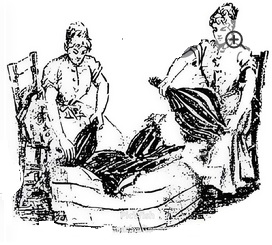 On peut donc calculer qu’elles confectionnent un cigare par minute, la journée étant de dix heures. Mais c’est là un chiffre que n’atteignent que des ouvrières d’élite. La rapidité avec laquelle elles travaillent est excessive ; dans le petit tas de feuilles froissées empilées à portée de leur main, elles prennent des fragments, les pressent, les unissent c’est ce qu’on appelle en argot d’atelier, la tripe; une feuille prestement roulée en tuyau autour d’elle la maintient: voilà la poupée; c’est l’état d’un cigare revêtu de la sous-cape ; il ne reste plus maintenant qu’a l’envelopper de sa robe, c’est l’opération la plus délicate.