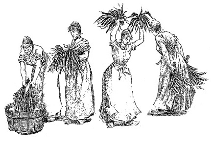 Les opinions paraissent aujourd’hui partagées, et le lavage méthodique est abandonné dans plusieurs manufactures. Mais les feuilles n’en sont qu’a leur première étape. Elles ont, avant d’être distribuées aux cigarières, un voyage à faire autour de la manufacture. Quelques-unes, toutefois, à cause de leur finesse et de leur qualité, ne subissent pas cette première épreuve. On les humecte légèrement et on les fait ensuite sécher sur des claies.