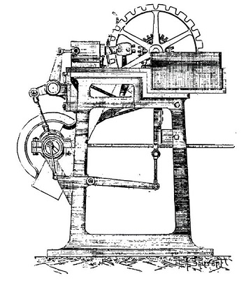 (1) On s’est servi pour la fabrication mécanique de la machine Reininger. Cette machine, dit M. l’ingénieur Lere, est composée de deux parties distinctes : la première est formée de deux toiles sans fin pour amener le tabac, et d’un distributeur, petit couteau qui sépare la quantité de tabac nécessaire; la seconde est une poche consistant en une double toile caoutchoutée. dans laquelle on roule le tabac composant l’intérieur avec son enveloppe. La robe est mise au sortir de la machine. La seconde partie de la machine, ou rouleau, est seule employée maintenant pour quelques produits spéciaux notamment les cigares dits havanes à 12 centimes et demi. Une autre machine due à M. Hamel sert à caper les cigares. Elle enroule, entour de la fourniture, les robes découpées à l’avance.