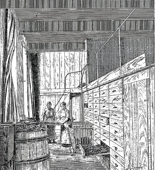 Ceci peut paraître singulier, c’est cependant une observation d’une exactitude rigoureuse. Une fois terminés et reçus, les cigares sont envoyés au séchoir. Les séchoirs sont composés de petites cases longues assez semblables aux hottes de cigares à 10 centimes. C’est là qu’ils doivent perdre peu à peu l’humidité dont ils sont encore imprégnés. Ils passent d’ordinaire quinze jours à un mois au séchoir. C’est certainement une période suffisante, mais c’est le minimum du temps exigible. Une année entière serait presque nécessaire pour obtenir des cigares parfaits.