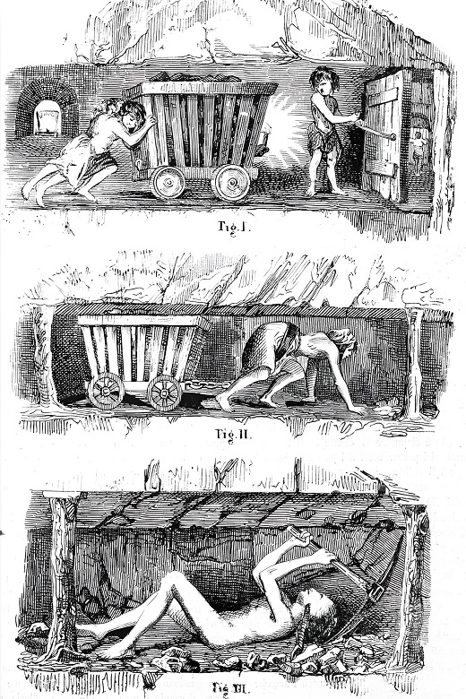 Aussi une loi, votée à la fin de la dernière session par le Parlement, interdit le travail des femmes dans les mines ; les enfants désormais ne pourront y descendre avant l’âge de dix ans, et jusqu’à quinze ils ne pourront pas y travailler plus de trois jours par semaine ; enfin les exploitations souterraines de tout le Royaume-Uni seront soumises à la surveillance des inspecteurs des manufactures créés par la loi de 1833.