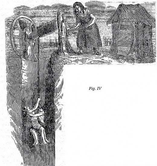 La condition des femmes et des jeunes filles qui travaillent dans les mines est encore plus déplorable. Les Jeunes filles sont employées aux mêmes travaux.que les garçons: elles poussent les chariots et les traînent comme eux ; mais on les assujettit, ainsi que les femmes, à des travaux auxquels les ouvriers de l’autre sexe ne veulent à aucun âge se soumettre. Ainsi en Écosse, où dans beaucoup de mines il n’y a pas de machines pour élever le charbon à la surface de la terre, ce sont des femmes et des jeunes filles qui le montent sur leur dos dans des corbeilles, par des échelles ou des escaliers grossièrement construits. Elles sont si peu vêtues, qu’elles n’osaient paraître devant les commissaires chargés par le gouvernement d’une enquête sur ces tristes faits. (Fig.IV)