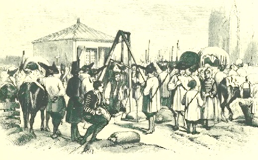 Cette industrie ne peut, du reste, s’exercer que sous la surveillance des douanes. Munis d’un permis, les saulniers prennent telle quantité de sel qu’ils désirent, en remplissent des sacs, les chargent sur leurs mules, se rendent au bureau des douanes, où, le sel ayant été pesé, on leur délivre un acquit à caution, portant la quantité du poids et la somme exigée pour le droit, qu’ils paient tout de suite. Après ces longues formalités, après avoir été visités de nouveau et leur sel pesé plusieurs fois, ils franchissent enfin la ligne importune des douanes.